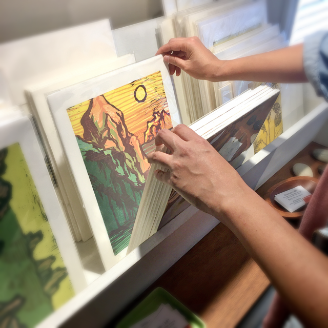 This is a printmaking focused gallery in South Carolina, with relief prints, woodcuts, monotypes, and etchings for sale in Greenville SC, selling contemporary printmakers of the upstate. Also hosting assemblage and found object works, collage, and multimedia art. Come for a visit!